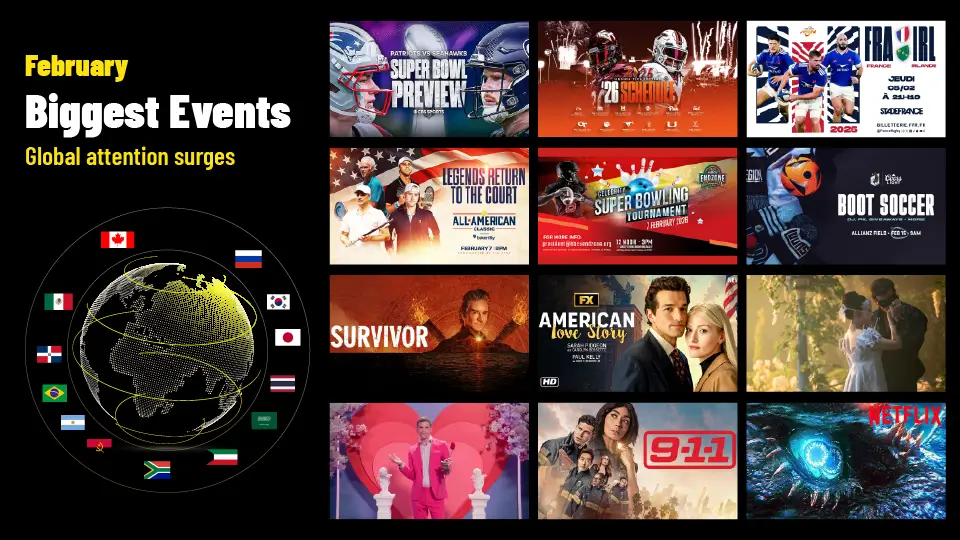 Best streaming options by region to watch February’s biggest events such as the Super Bowl, major football tournaments, award-season movies and so on.